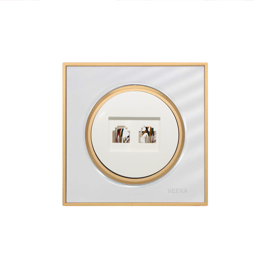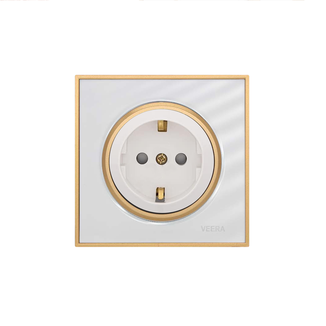 کلید و پریز مدل آلفا زه طلایی، جنس گلس، طرح اسپرت (رنگ سفید)